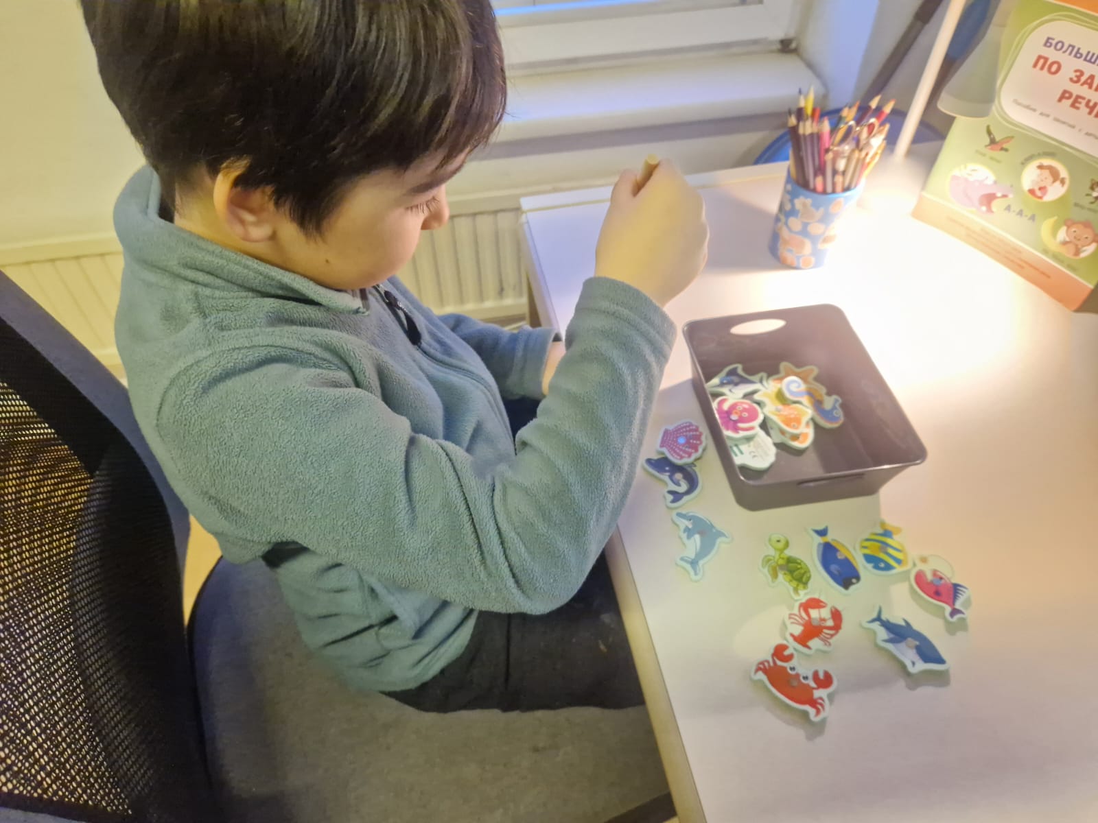 Материалы к занятиям подбираются индивидуально исходя из особенностей и интересов каждого ребёнка.